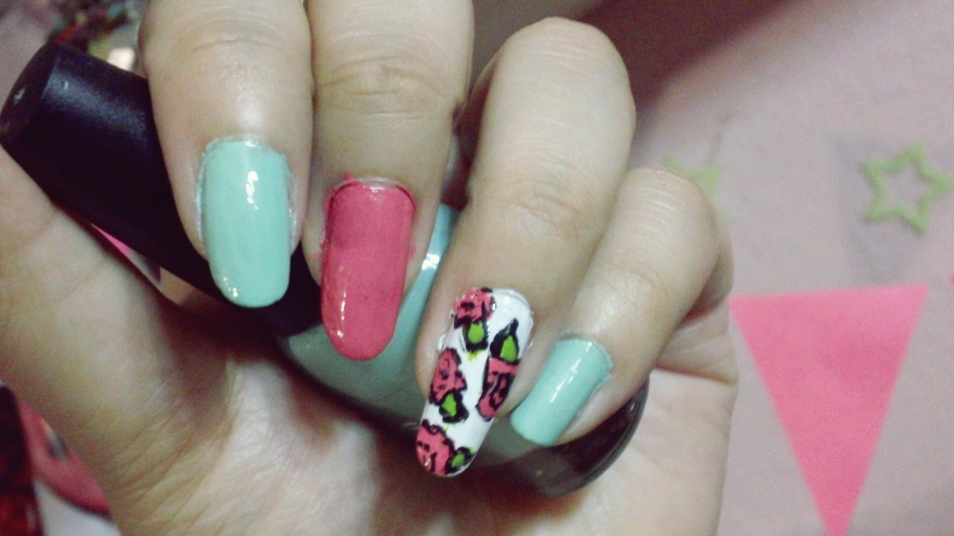 Bueno, el Post de hoy es de "Uñas del día" las cuales me inspire en una imagen que encontré en Internet, obvio no son iguales pues soy un desastre con eso de los diseños. Les pido una disculpa con el nombre de los esmaltes de bissú pero se les borro.